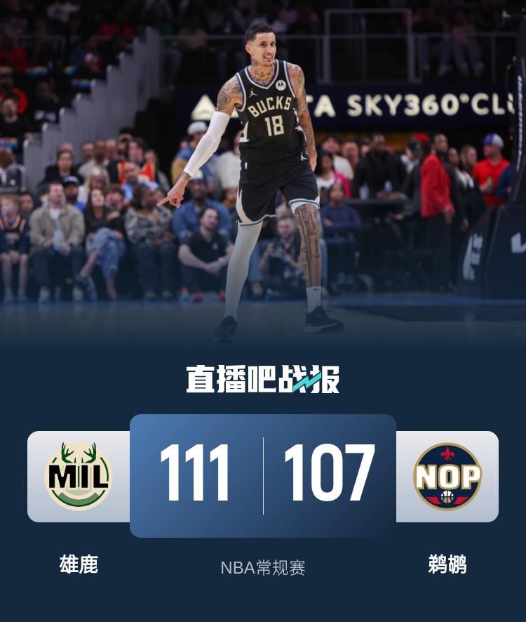 4月7日讯 NBA常规赛,鹈鹕今日迎战雄鹿,前者近来两连败,后者则是三连胜,此役字母哥、利拉德、康诺顿和鹈鹕众将缺战。