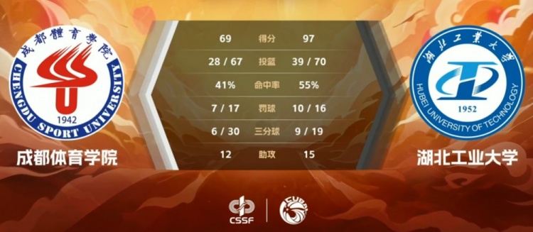 湖北工业大学:黄浩杰23分6篮板2封盖、胡景源22分5篮板2抢断、梁米一18分6篮板、张子涵13分3篮板5助攻、栗力德8分6篮板2助攻、胡琳易5分。