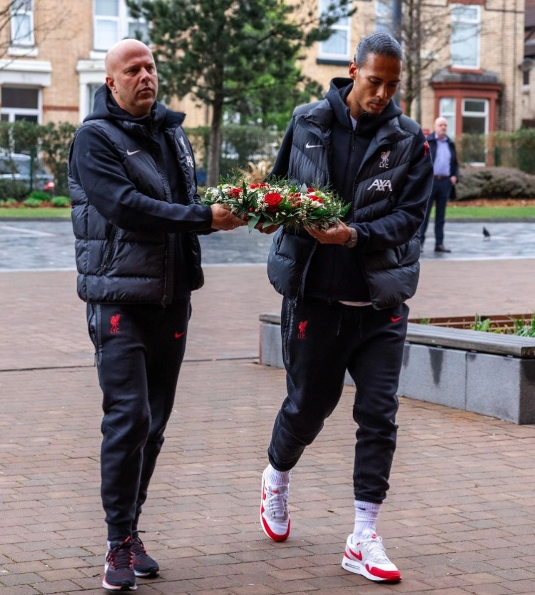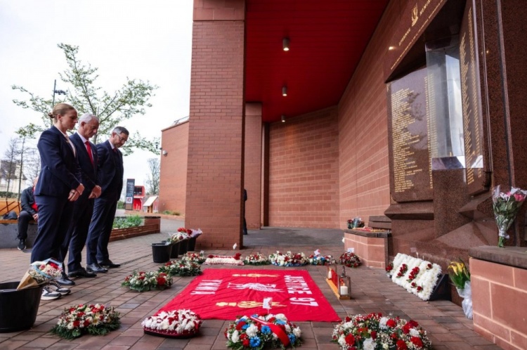 1989年4月15日,足总杯半决赛红军与诺丁汉森林比赛期间的悲剧导致97名球迷遇难,他们永远不会被遗忘。今天早上,利物浦男足、女足以及U21、U18的教练和队长在安菲尔德的希尔斯堡纪念馆敬献了花圈,首席法律顾问乔纳森-班伯、大使娜塔莎-道伊和伊恩-拉什等人也参加了活动。
