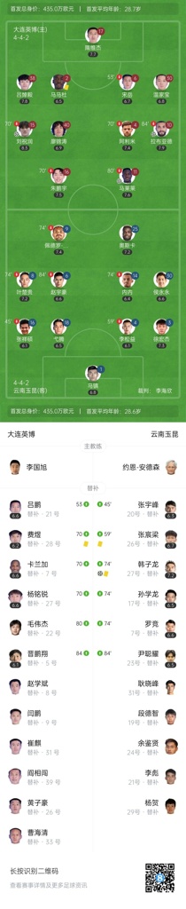 5月1日讯 北京时间5月1日下午15:30,中超第10轮,大连英博坐镇大连体育中心体育场迎战云南玉昆。上半场,奥斯卡进球被吹越位,马莱莱破门,拉布亚德凌空斩。下半场,刘祝润惊艳一条龙,韩子龙任意球破门,侯永永再追一球。全场结束,大连英博3-2云南玉昆。本场过后,大连英博积13分暂列第7,云南玉昆积9分排名第11。