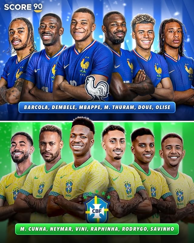 锋线哪家强?法国、巴西、西班牙、英格兰锋线配置PK