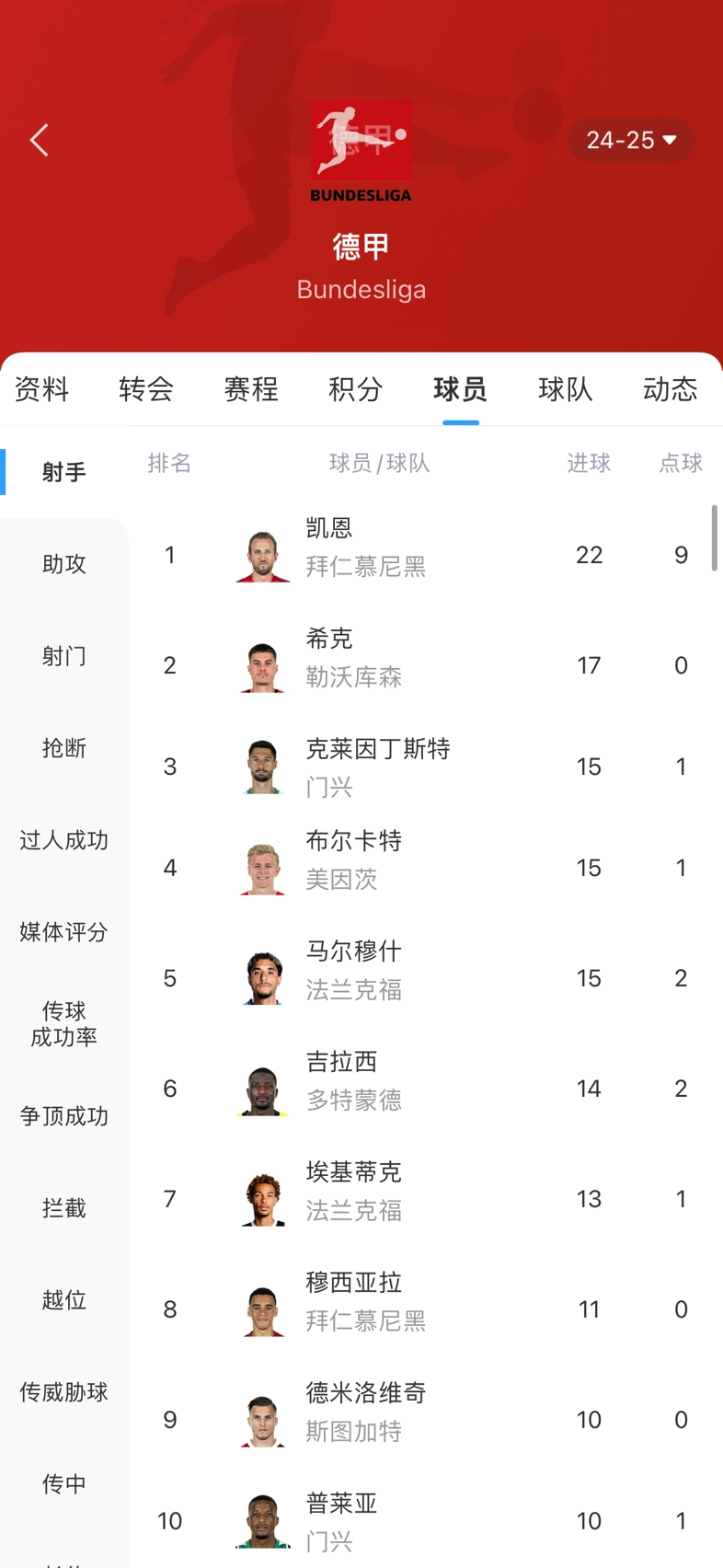 目前的德甲射手榜↓