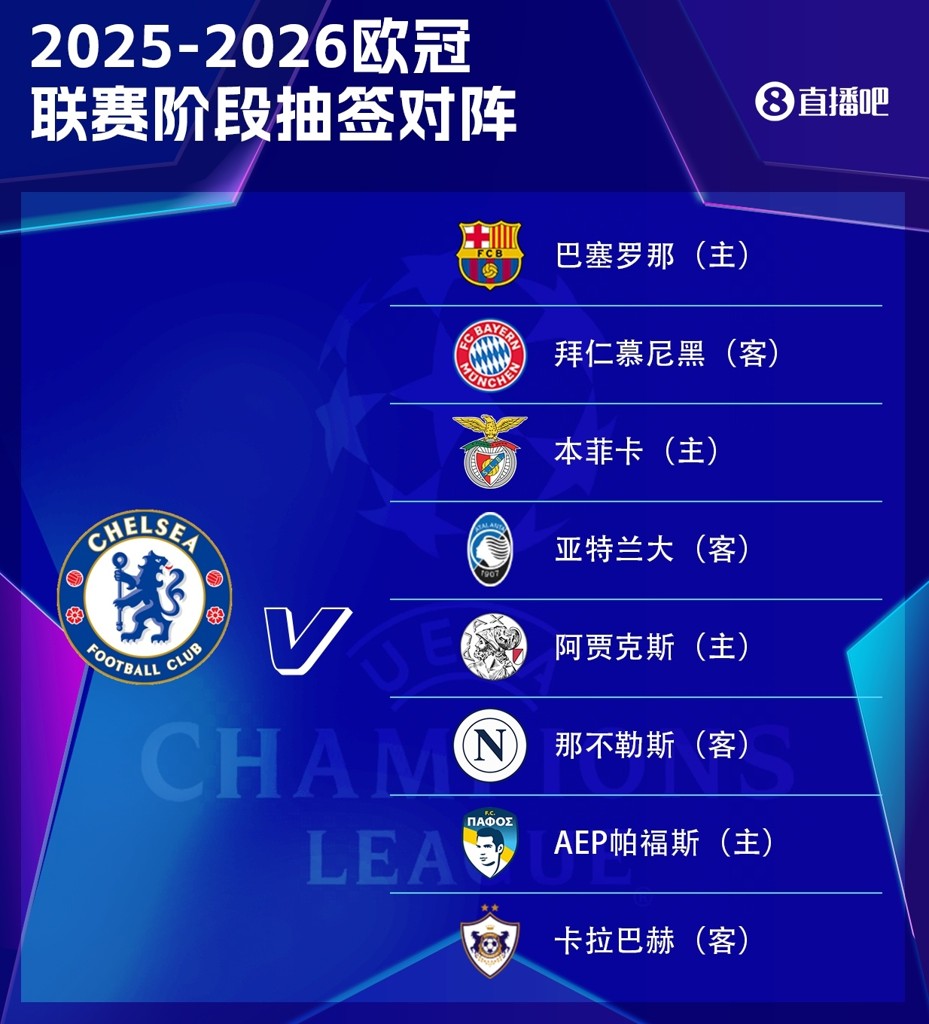 08月30日讯 欧足联官方公布欧冠联赛阶段赛程,切尔西赛程如下。