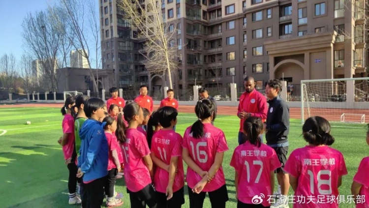 近日,石家庄功夫足球俱乐部走进石家庄市裕华区南王学校,积极履行社会责任,开展了一系列合作交流活动,为校园足球事业发展注入活力。俱乐部教练组成员携队员丹克莱尔、杨云、徐骏驰、赵昱博参与其中,携手学校师生共同推动足球文化传播。