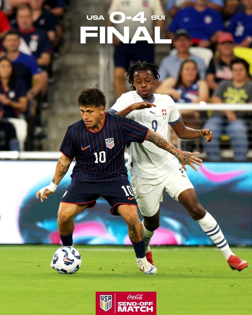 6月11日讯 国际友谊赛,美国0-4惨败瑞士,进入2025年后的4场比赛全败。